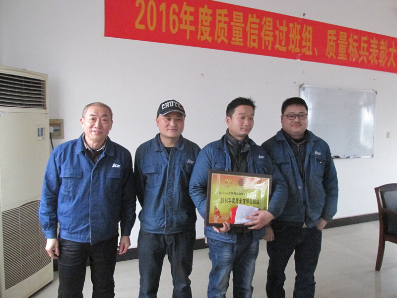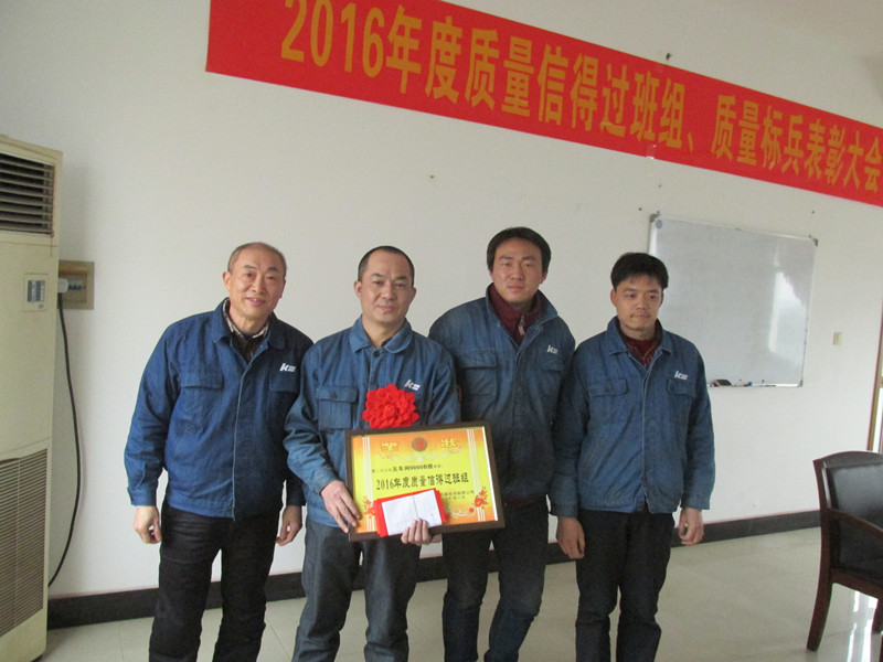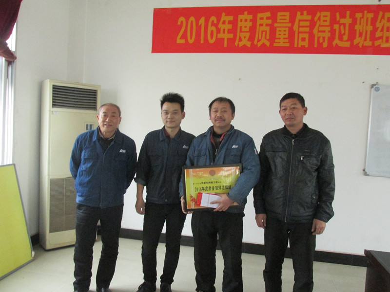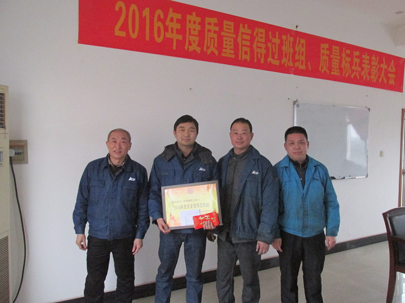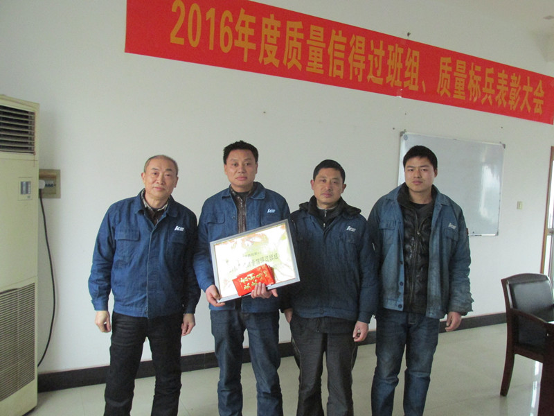 該班組由皮立國同志負責,共有17人,主要特點是2016年產量達11.4萬件,按計劃積極保證了對900A平板的供貨,質量穩定,退貨率為0.60%,在產品的生產過程中發揮了重要作用;重機監查得72分,全年改進創新16項,表現突出。