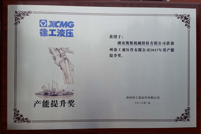 湖南凱斯機械股份有限公司于2018年1月12日受邀參加徐州徐工液壓件有限公司2017年供應商大會。2017年湖南凱斯為徐工液壓的配套過程中,不斷提升品質,提高產能。2017年全年供貨量比2016年提高了4倍。在2017年底徐州徐工液壓件有限公司的供應商綜合評價中,湖南凱斯機械股份有限公司綜合績效得分98.4分,被評為等級 高 的A類供應商,并獲得2017年度產能提升獎。