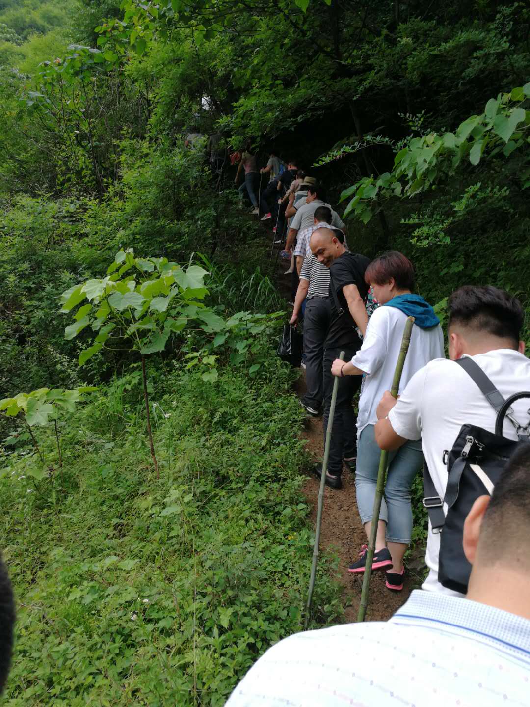 徒步登山團隊 早上7點在凱斯三區集合,然后統一乘車,上午十時到達黃花溪景區,稍事休整后,以部門為單位分為四個小組,開始徒步登山。黃花溪、神鷹山青山綠蔭環抱,小溪潺潺流水叮咚。沿路攀行,絕壁蒼松翠柏,繁花點點,經險處人工棧道,巨石欲墮,奇石林立,千百成峰,花香撲鼻,猶如人間仙境。途中,大家精神抖擻,奮力爭先,相互支持,團結協作,在一片歡聲笑語中,經過約兩小時的跋涉,全部勝利抵達終點。大家登上山頂,視野頓覺開闊,使生活在平原地帶的我們體會了一覽眾山小的萬丈豪情。整個登山活動歷經約5小時順利結束。