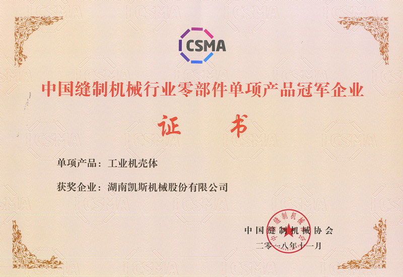 11月17日,2018年中國縫制機械行業大會在浙江省諸暨市召開。會上發布了該行業首批零部件單項產品****(優勢)企業名單。湖南凱斯機械股份有限公司以工業機殼體光榮入選****企業。此次全國共有59家企業入選,其中單項產品****企業19家,單項產品優勢企業40家。