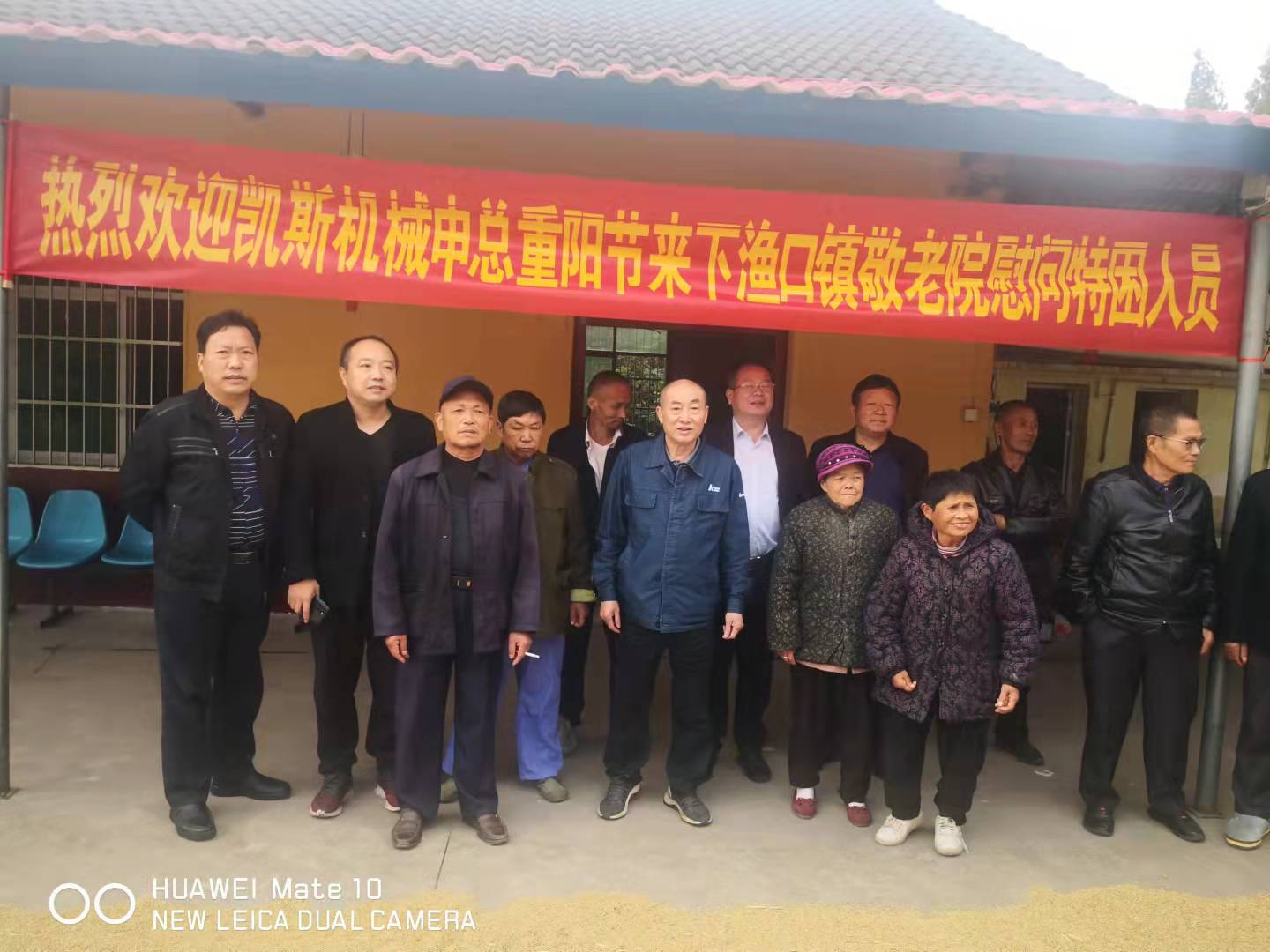 10月11日,在重陽節即將來臨之際,湖南凱斯機械股份有限公司董事長、總經理申建春在下漁口鎮黨委書記肖治國等的陪同下,專程來到下漁口鎮敬老院,看望慰問居住在該院的空巢、孤寡老人,詳細詢問、了解老人們的日常起居、身體健康狀況,囑咐他們要保重身體,并提前送上重陽節祝福,代表公司現場捐贈現金4萬元。