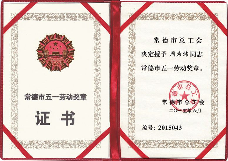 經(jīng)公司工會推薦,市總工會研究決定授予技術(shù)中心周為煒同志“常德市五一勞動獎章”的榮譽稱號,特此通報表彰。